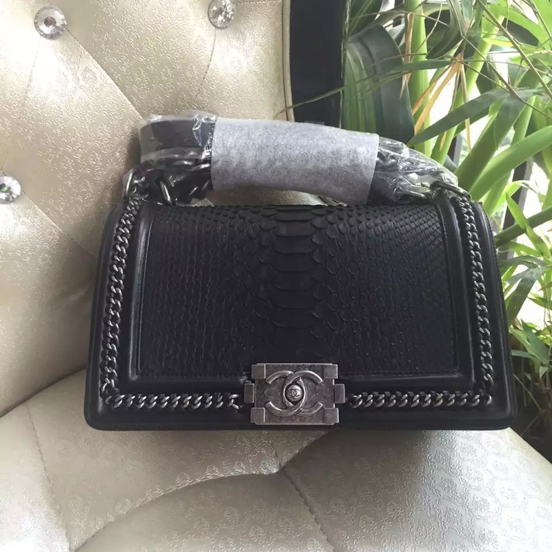 2016 Chanel Boy Flap Shoulder Bag Grey Real Snake Leather A67086 Silver