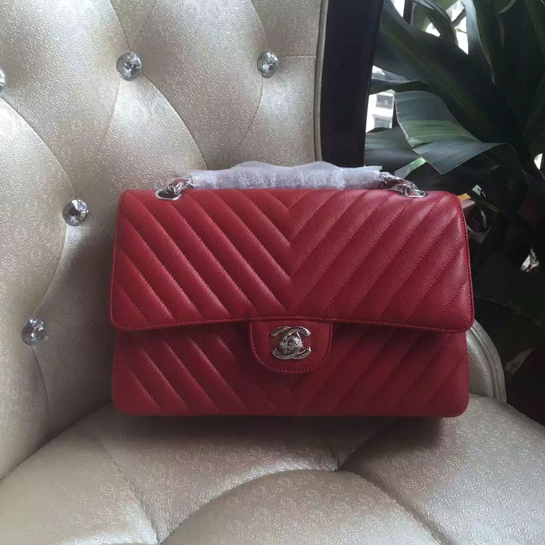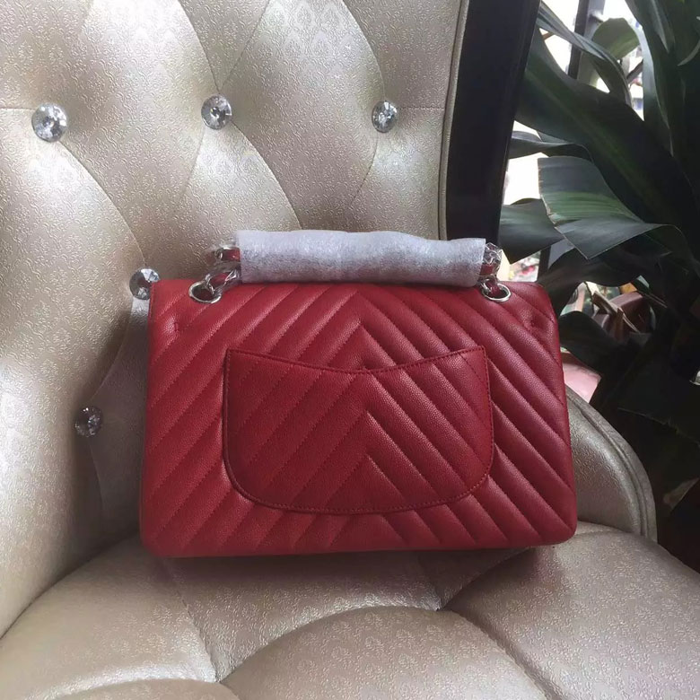 2016 Chanel CF Original Leather Classic Flap Bag 1112 Red Silver