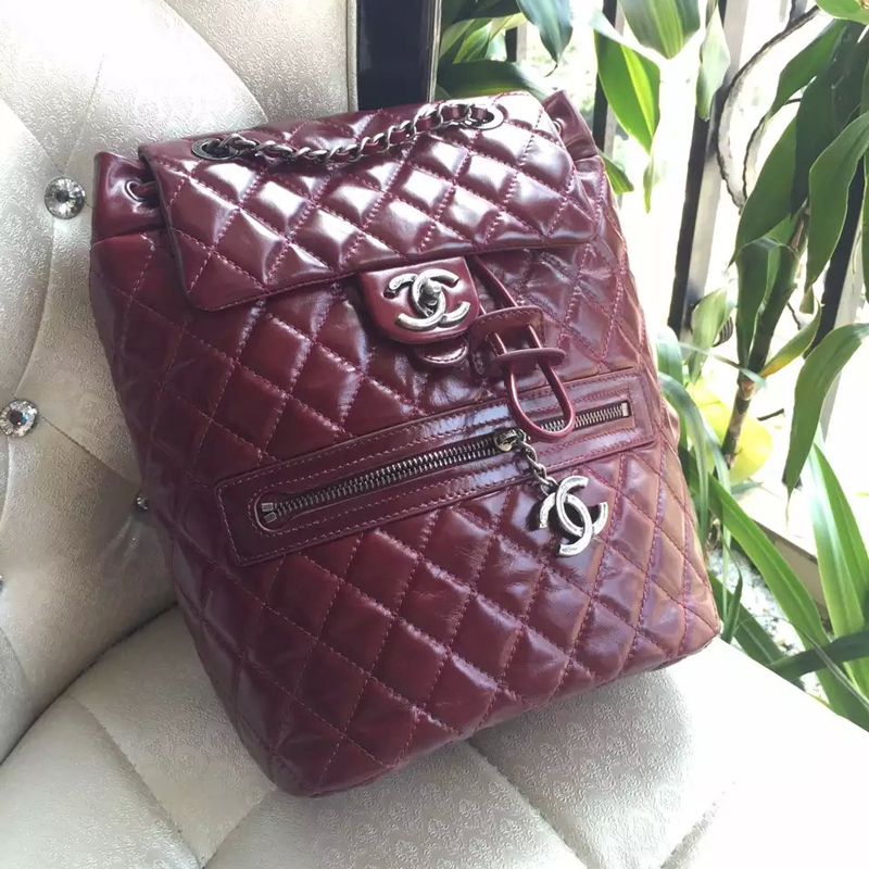 2016 Chanel Claret Original Leather Backpack Embellished With a cc Signature