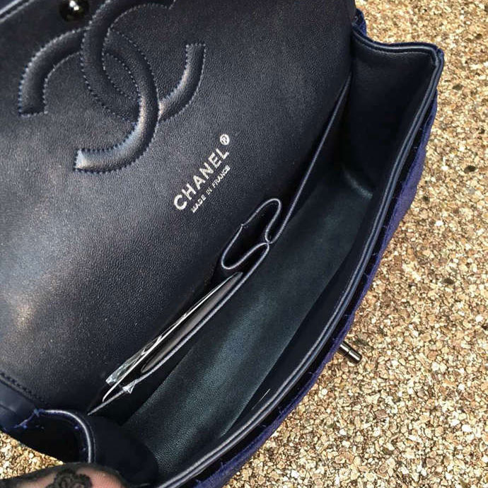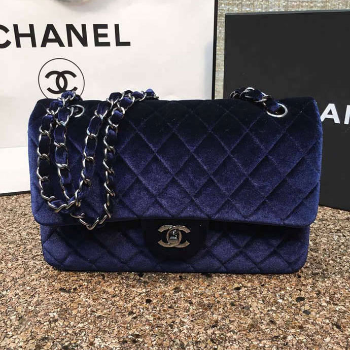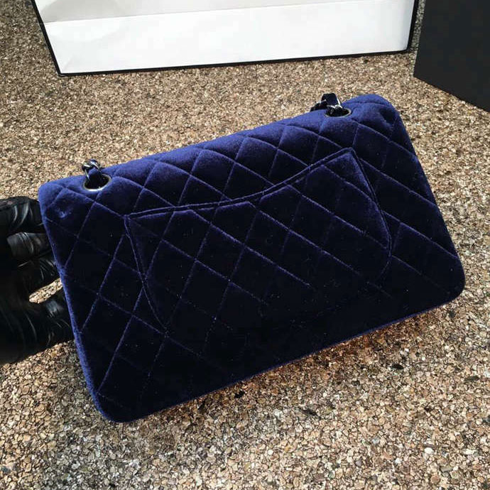 2016 Chanel Classic Flap Bag 1112 Original DarkBlue velvet with Silver