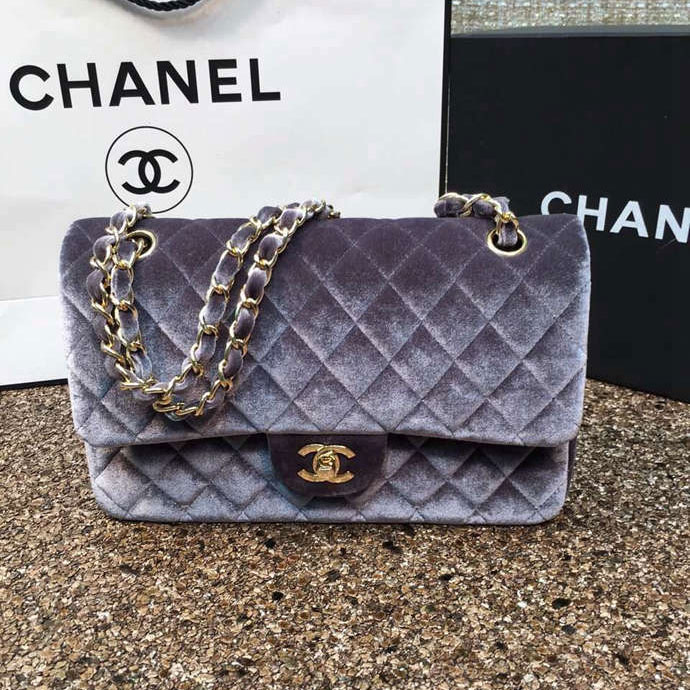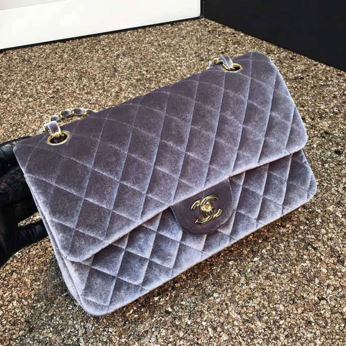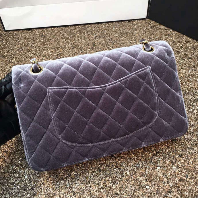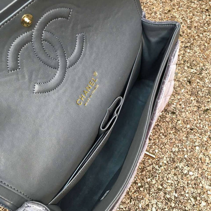 2016 Chanel Classic Flap Bag 1112 Original Gray velvet with Gold