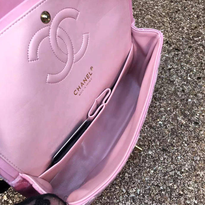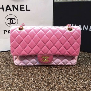 2016 Chanel Classic Flap Bag 1112 Original Pink velvet with Gold
