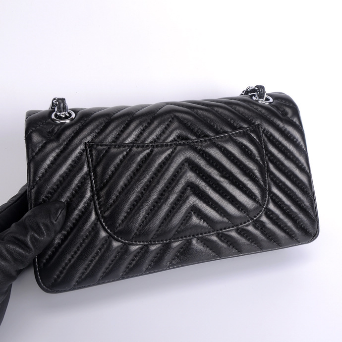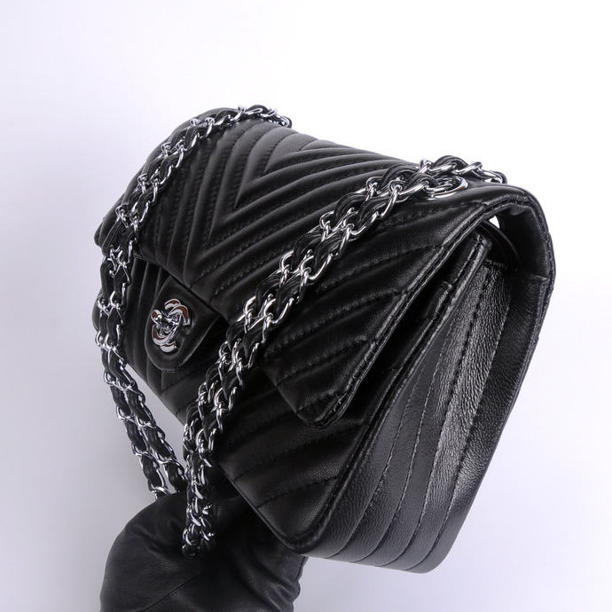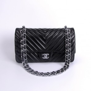 2016 Chanel Classic Flap Bag 1112 Sheekskin leather in Black with Silver