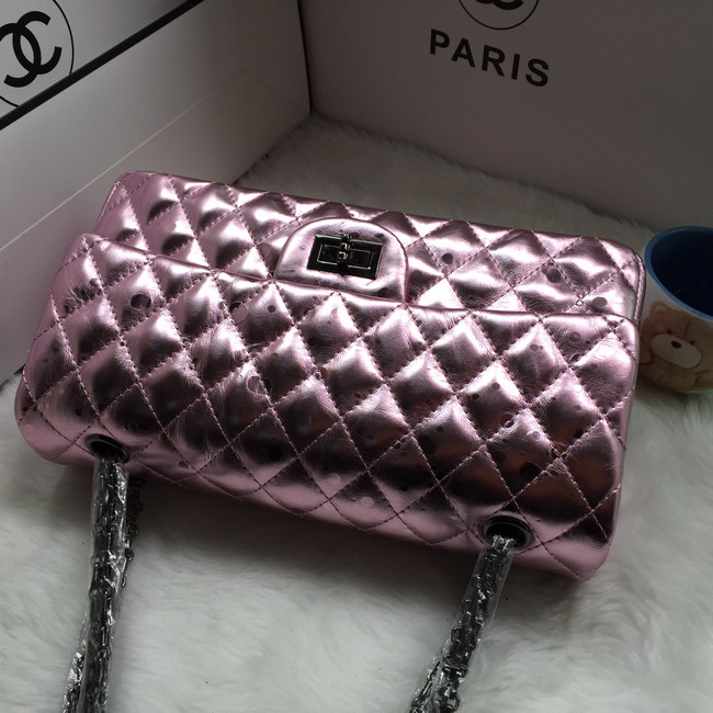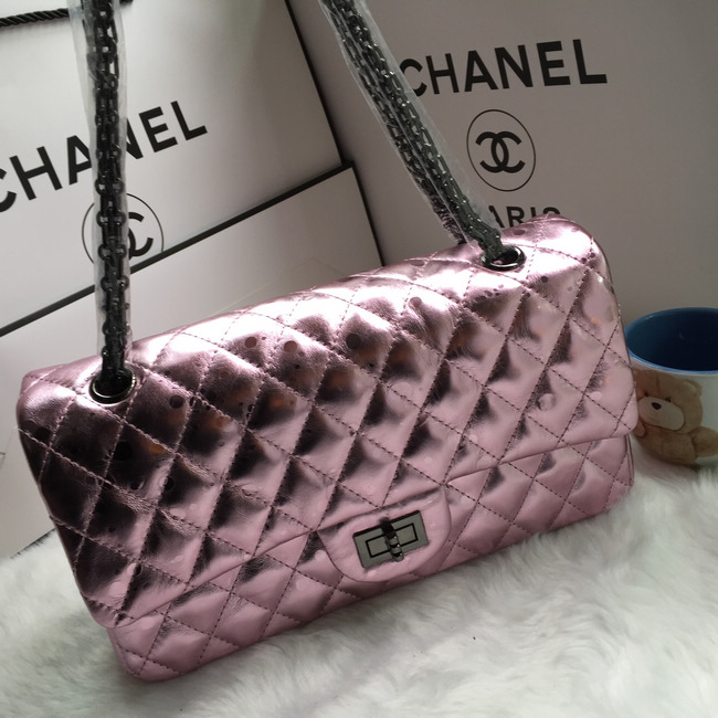 2016 Chanel Classic Flap Bag 1112 Shiny Iridescent Leather in Pink