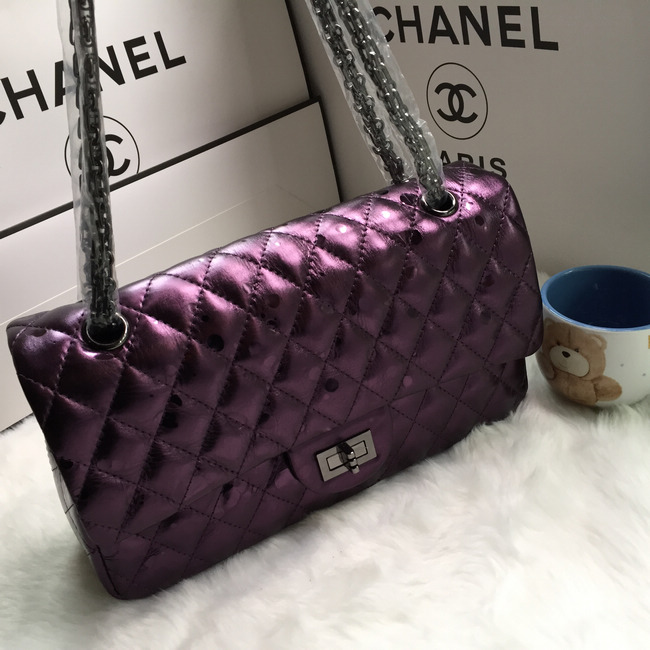 2016 Chanel Classic Flap Bag 1112 Shiny Iridescent Leather in Purple