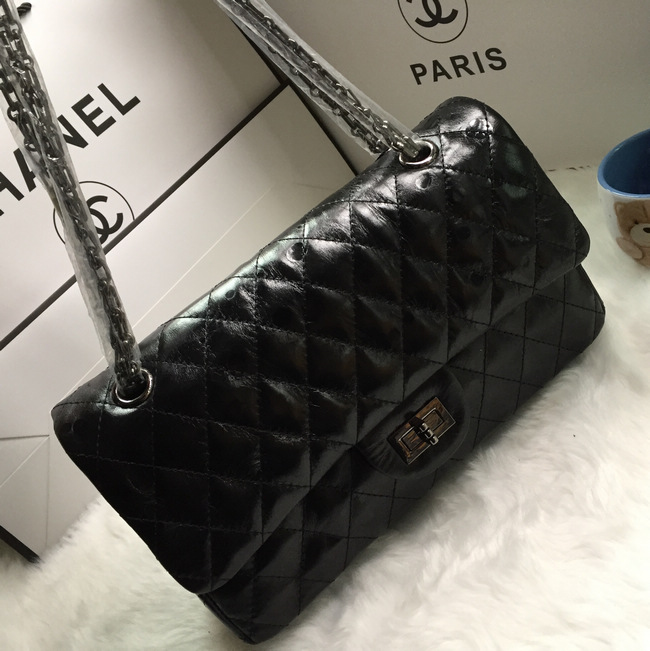 2016 Chanel Classic Flap Bag 1112 Shiny Iridescent leather in Black