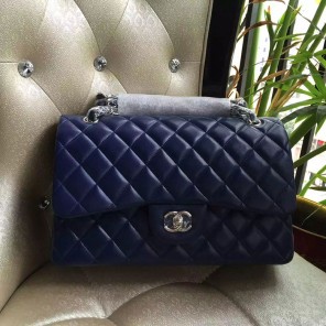 2016 Chanel Classic Flap Bag 1113 Blue Original Sheekskin leather Silver Hardware