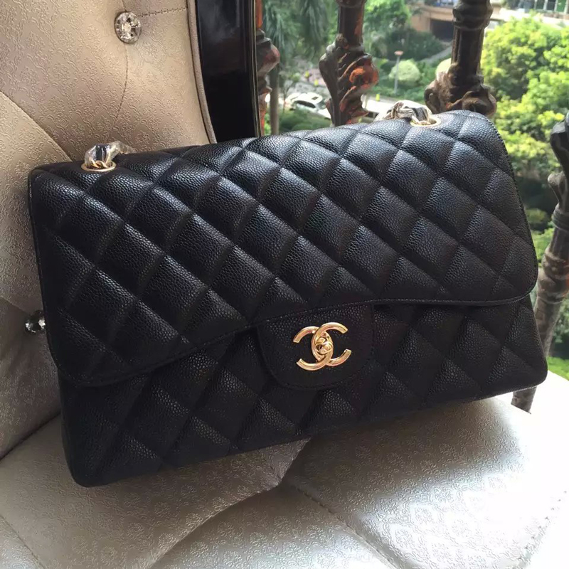 2016 Chanel Classic Flap Bag 1113 Original Caviar leather in Black Gold