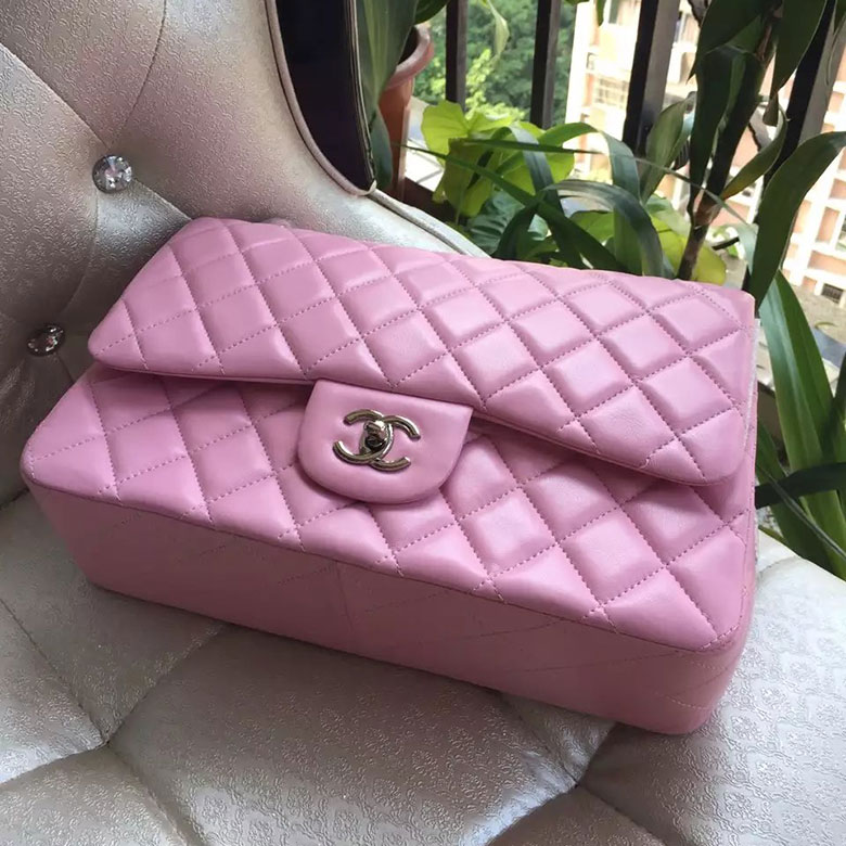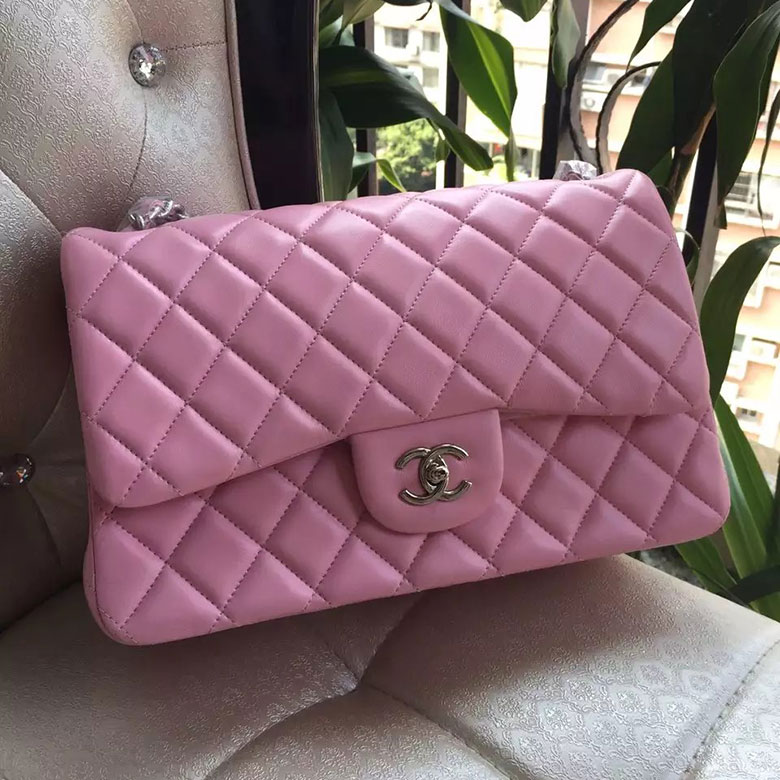 2016 Chanel Classic Flap Bag 1113 Pink Original Sheekskin leather Silver Hardware