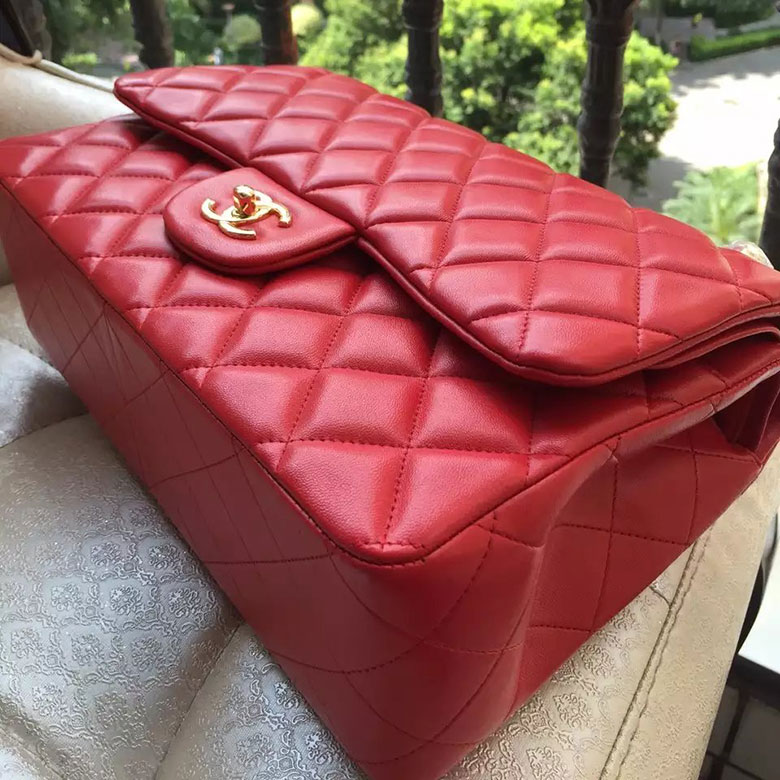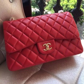 2016 Chanel Classic Flap Bag 1113 Red Original Sheekskin leather Gold Hardware