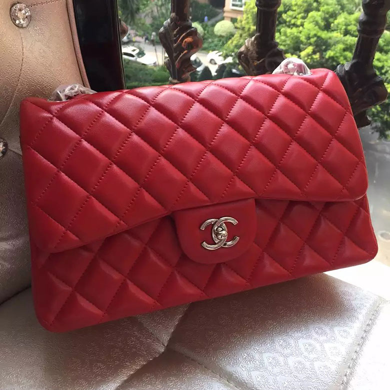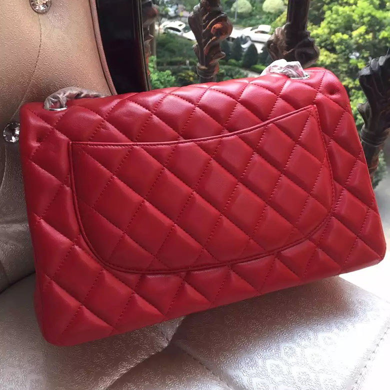 2016 Chanel Classic Flap Bag 1113 Red Original Sheekskin leather Silver Hardware