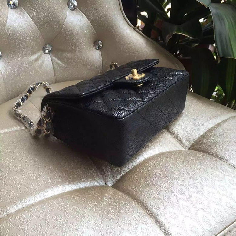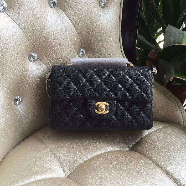 2016 Chanel Classic Mini Flap Bag A1114 Black Original Caviar leather Gold
