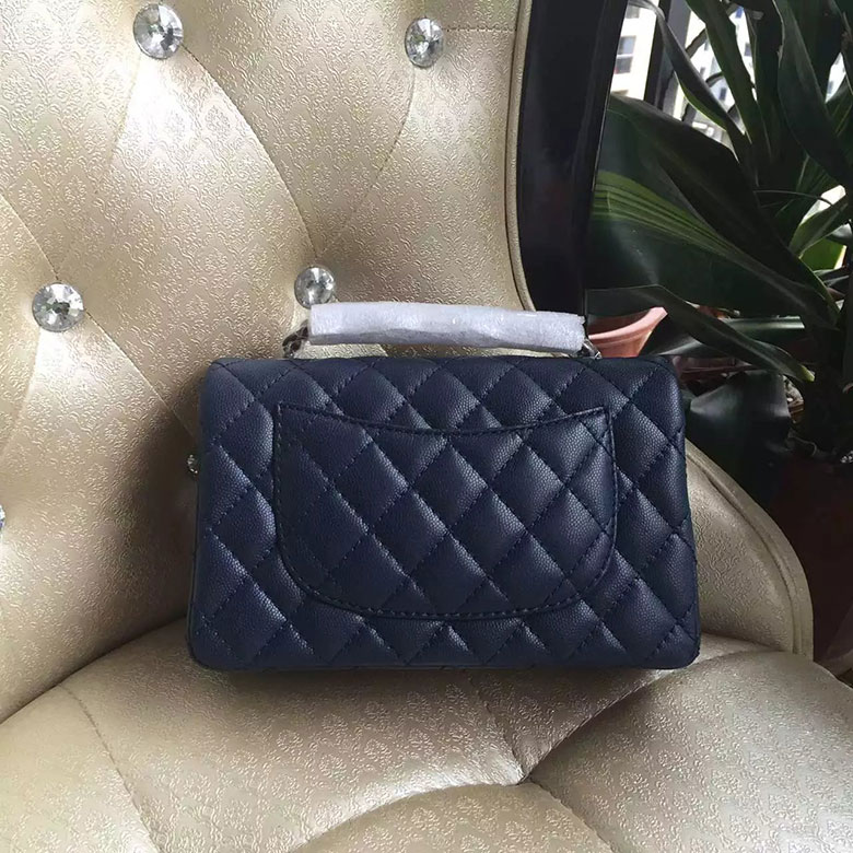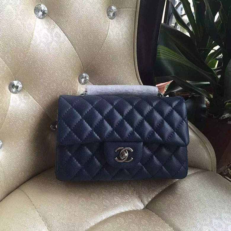 2016 Chanel Classic Mini Flap Bag A1114 Blue Original Caviar leather Silver