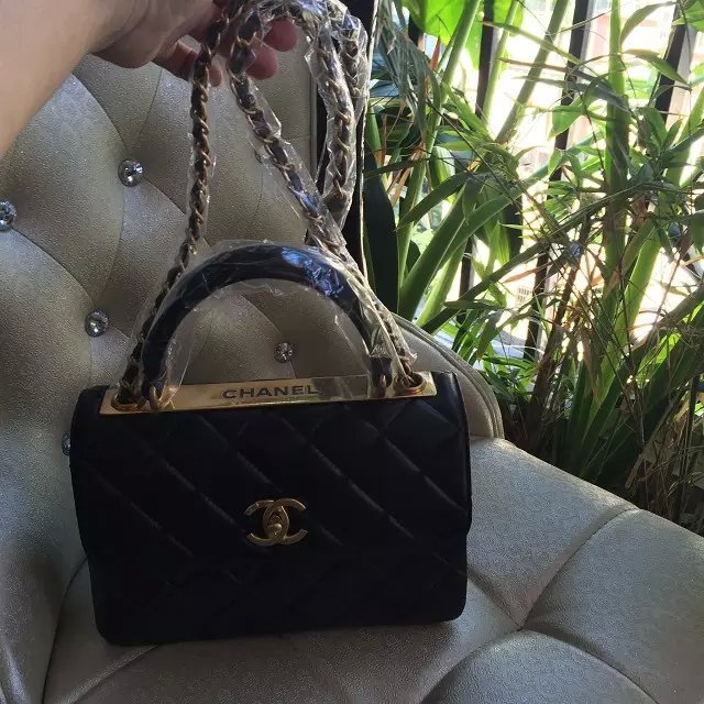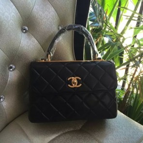 2016 Chanel Classic Top Handle Bag Original Sheepskin Leather A92236 Black
