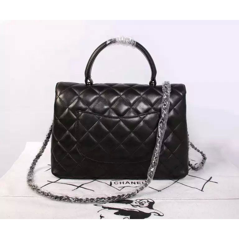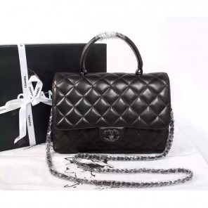 2016 Chanel Classic Top Handle Bag Original Sheepskin Leather A92238 Black