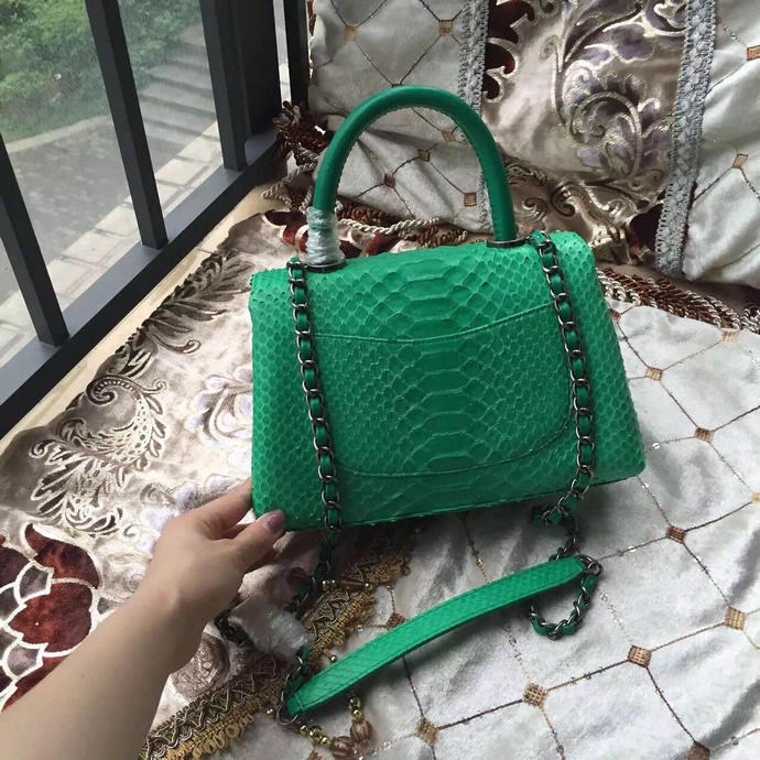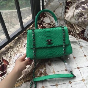 2016 Chanel Classic Top Tote Bag Original Snake Leather A95169 Green