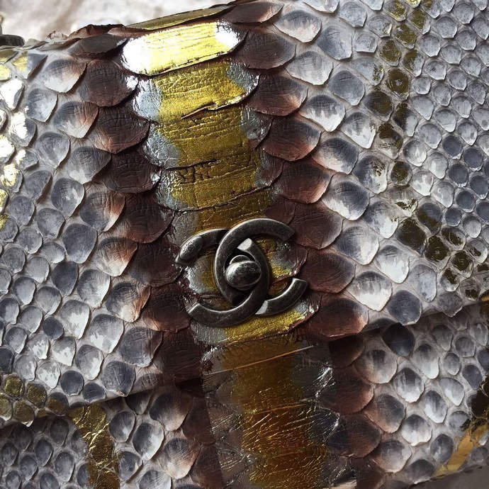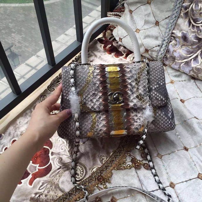 2016 Chanel Classic Top Tote Bag Original Snake Leather A95169 OffWhite