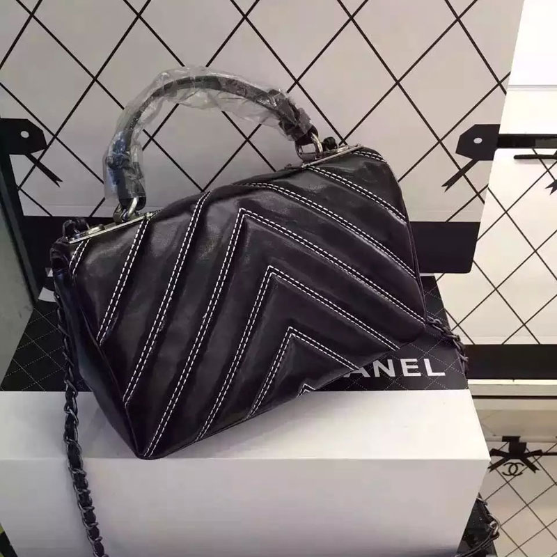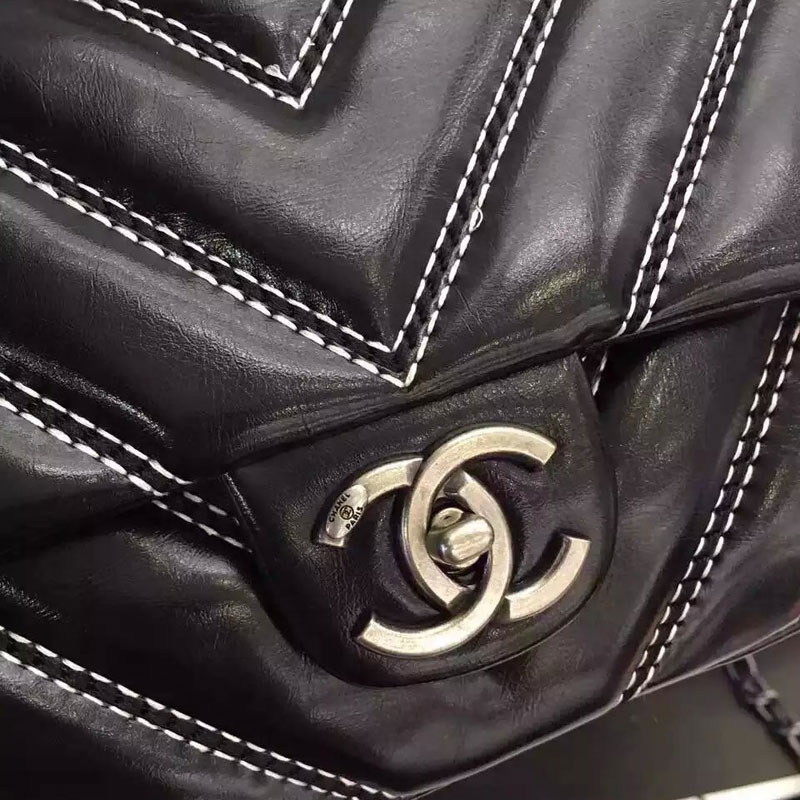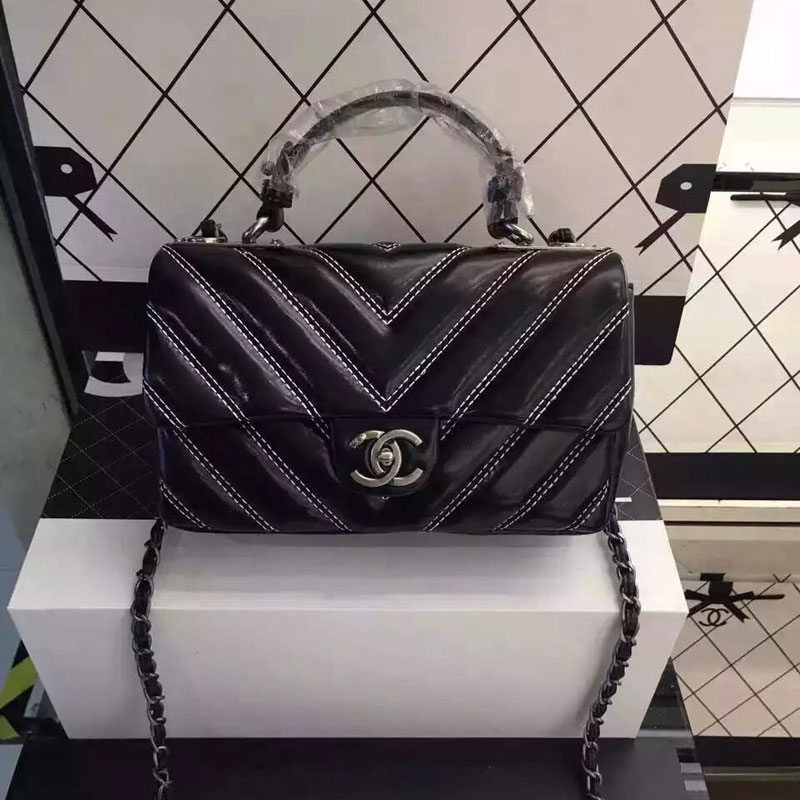 2016 Chanel Classic Tote Flap Bag Iridescent Leather A92358 Black