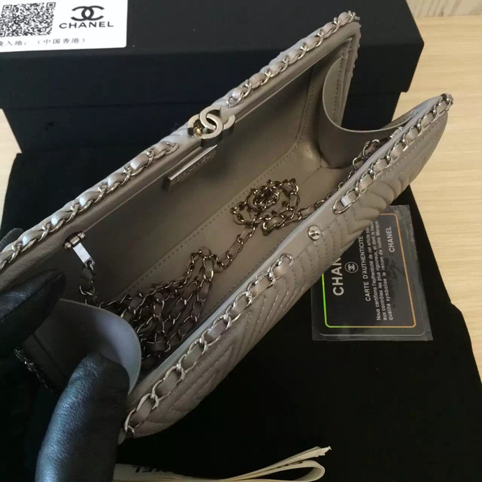 2016 Chanel Clutch Dinner Bag Original Sheepskin Leather A94431 Gray