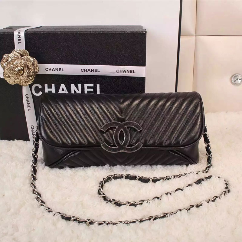 2016 Chanel Clutch Shoulder Bag Sheepskin Leather A0976 Black