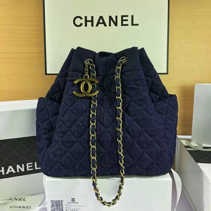 2016 Chanel Denim Fabric Hobo Bag A91136 Dark Blue