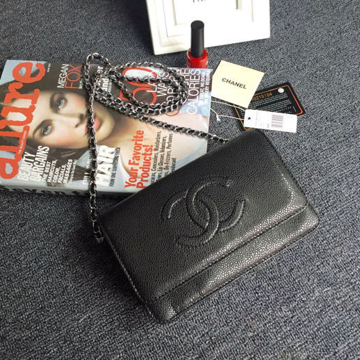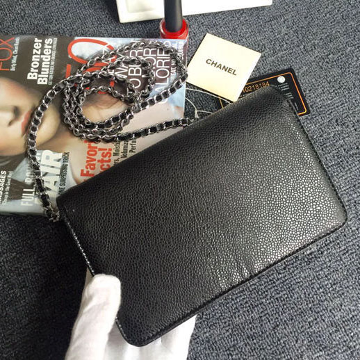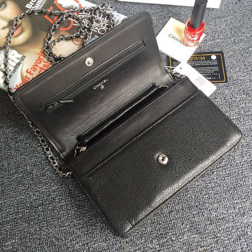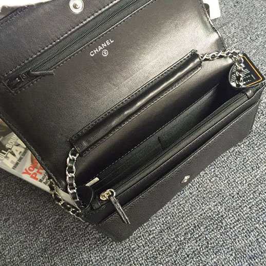 2016 Chanel Flap Shoulder Bag Black Caviar Leather A33817 Silver
