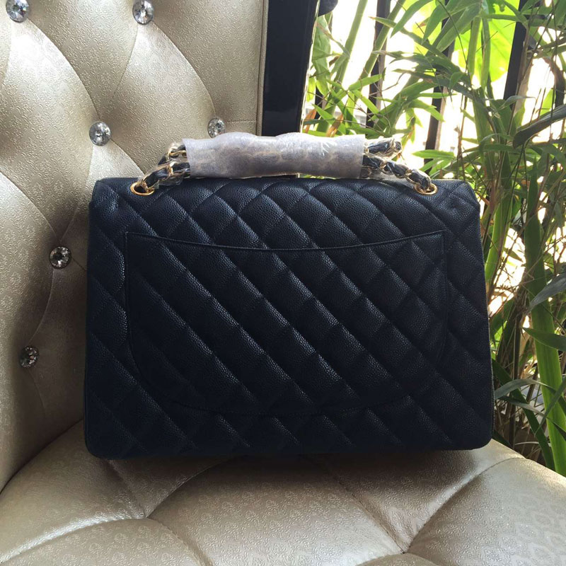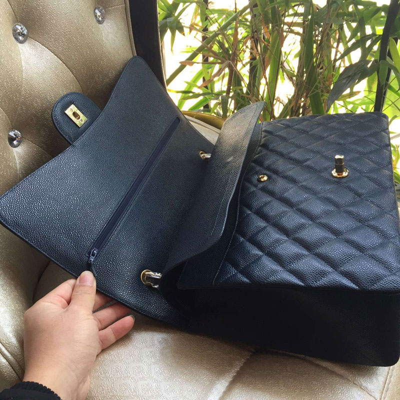 2016 Chanel Jumbo Double Flaps Bag Blue Original Caviar Leather A58601 Steel