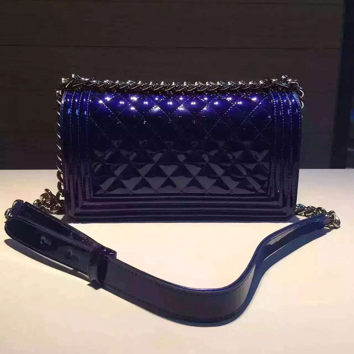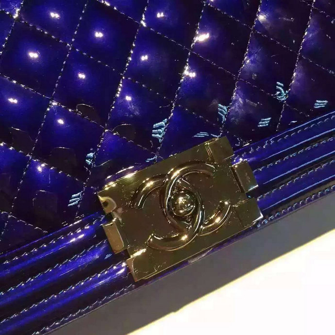 2016 Chanel LE Boy Flap Shoulder Bag Original Patent Leather A67086 Blue
