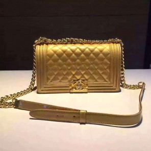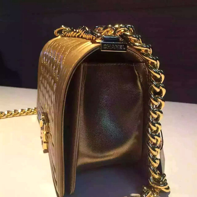 2016 Chanel LE Boy Flap Shoulder Bag Original Patent Leather A67086 Champagne
