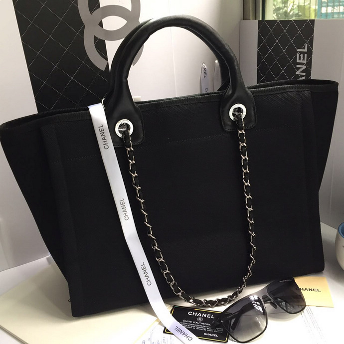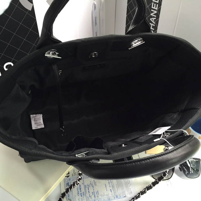 2016 Chanel Large Canvas Tote Shopper Bag A68046 Black