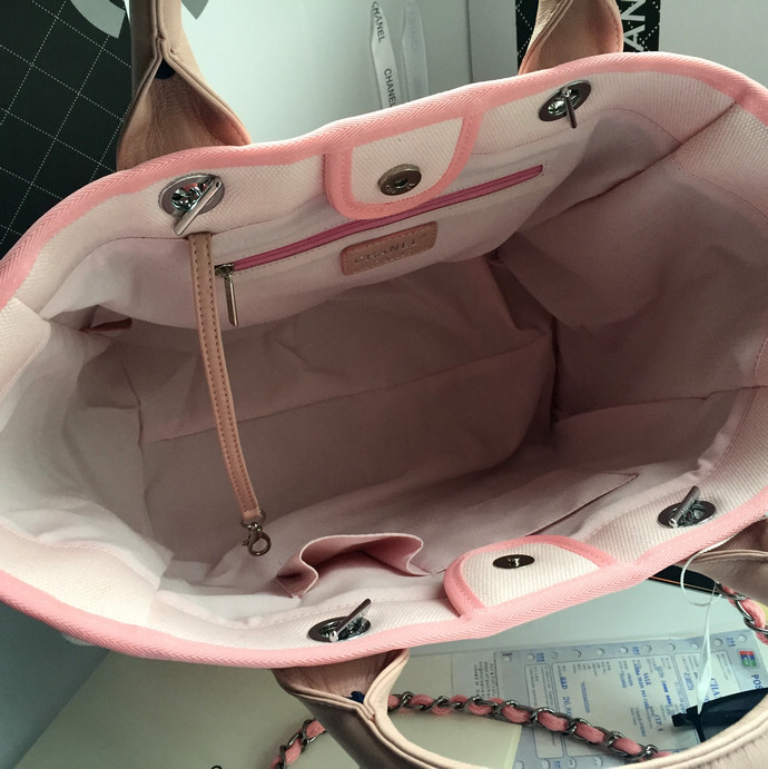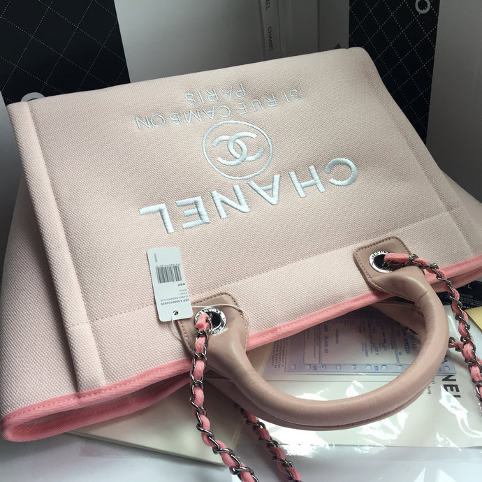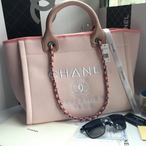 2016 Chanel Large Canvas Tote Shopper Bag A68046 Pink