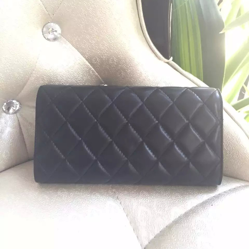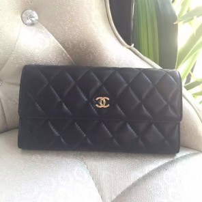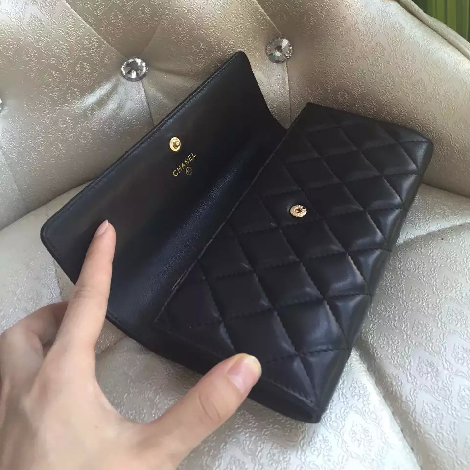 2016 Chanel Matelasse Bi-Fold Wallet Original Sheepskin Leather A50096 Black with Gold