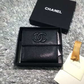 2016 Chanel Matelasse Tri-Fold Wallet Caviar Leather A48980 Black