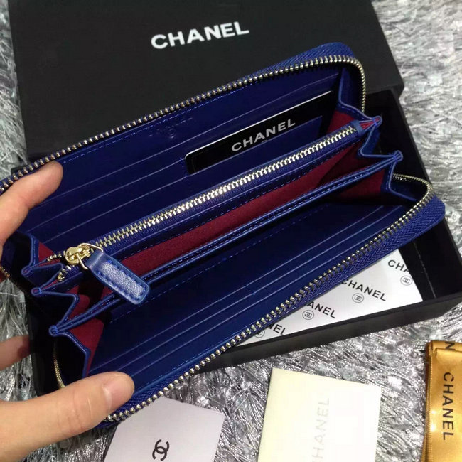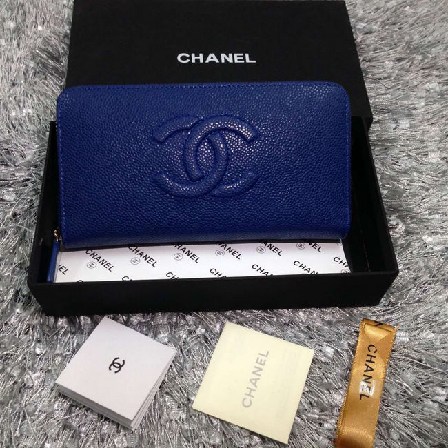 2016 Chanel Matelasse Zip Around Wallet Caviar leather A50071 Blue