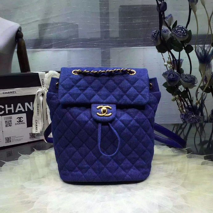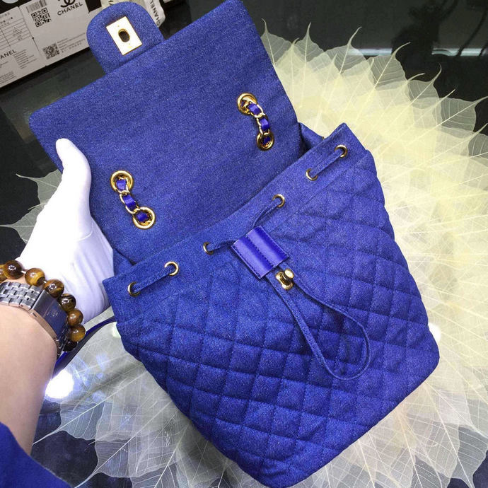 2016 Chanel Original Denim Fabric Backpack A91121 Blue