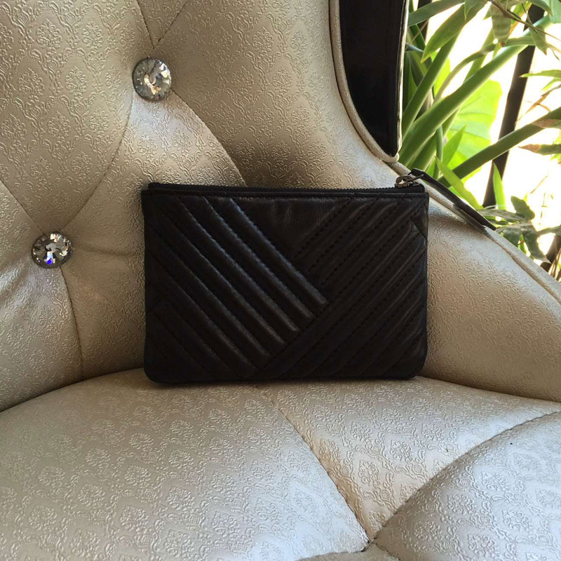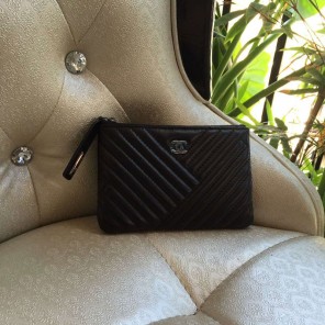 2016 Chanel Original Leather Zip Around Coin Purse A82258 Black