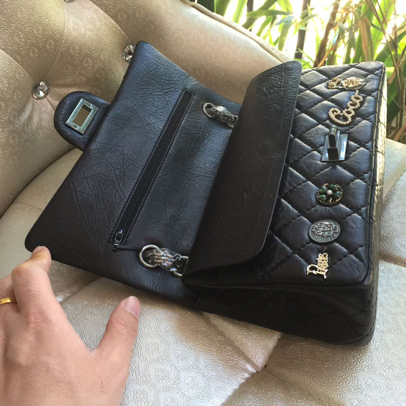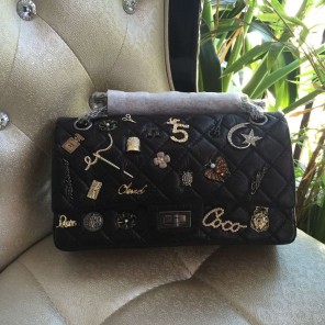 2016 Chanel Reissue 2.55 Lucky Charm Original Leather 1112 Black