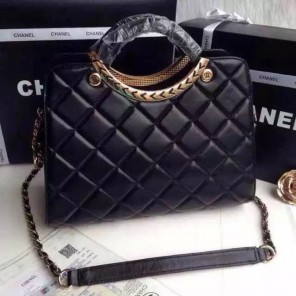 2016 Chanel Shopper Bag Sheepskin Leather A8240 Black