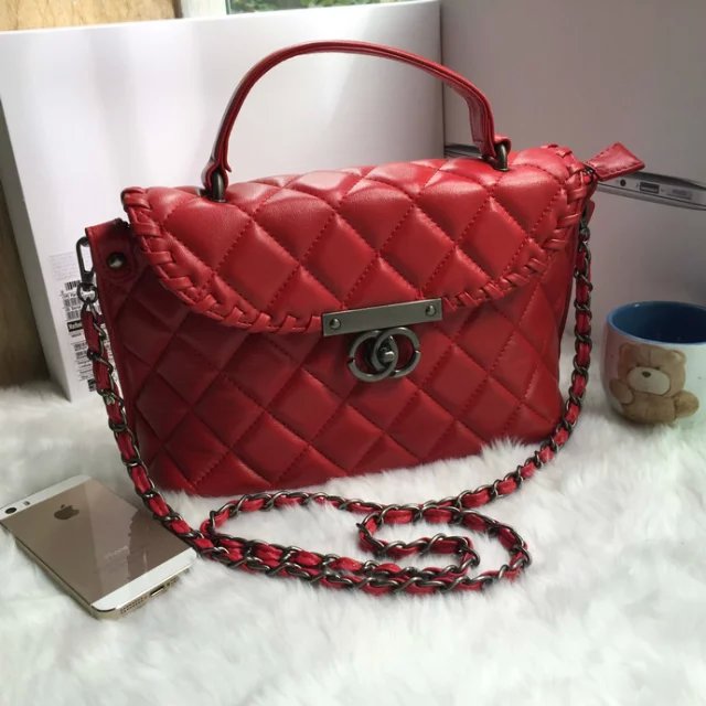 2016 Chanel Tote shoulder Bag Sheepskin Leather A9838 Red
