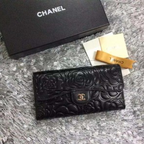 2016 Chanel Tri-Fold Wallet Black sheepskin leather A31506