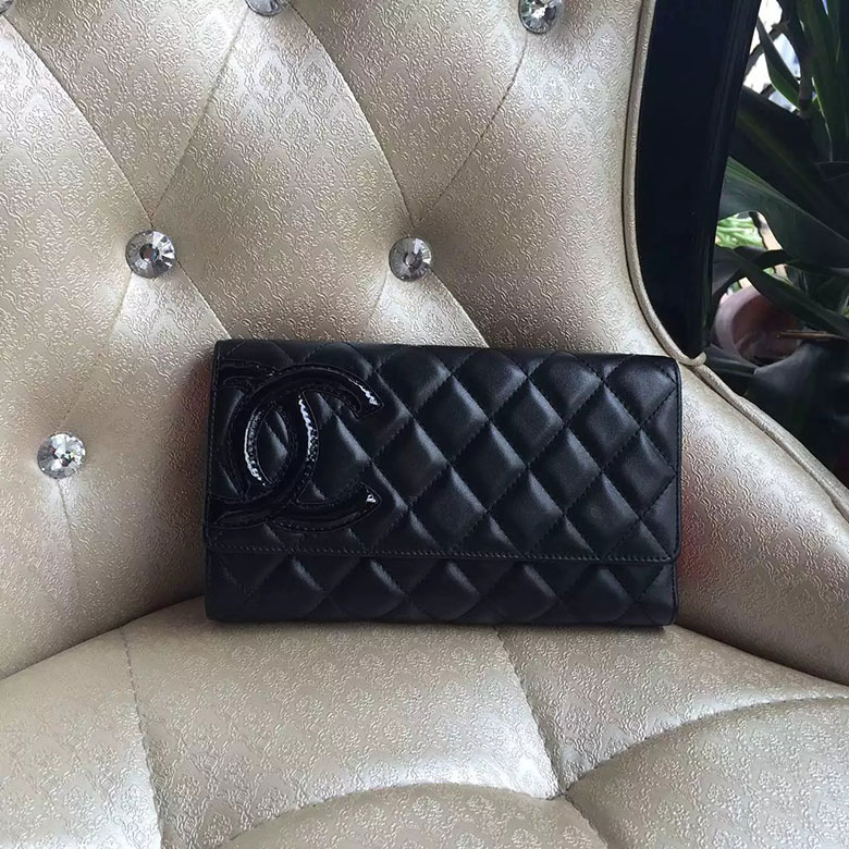 2016 Chanel Tri-Fold Wallet Original Calfskin Leather A46645 Black