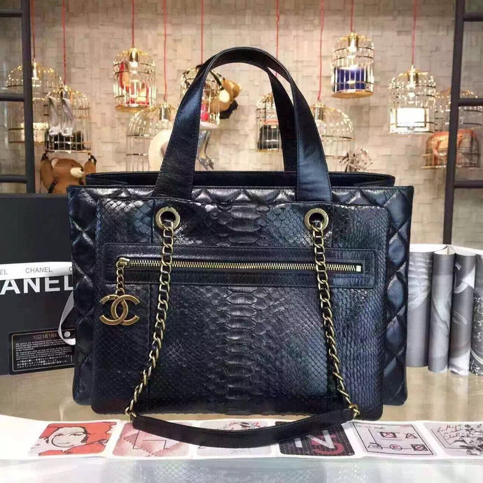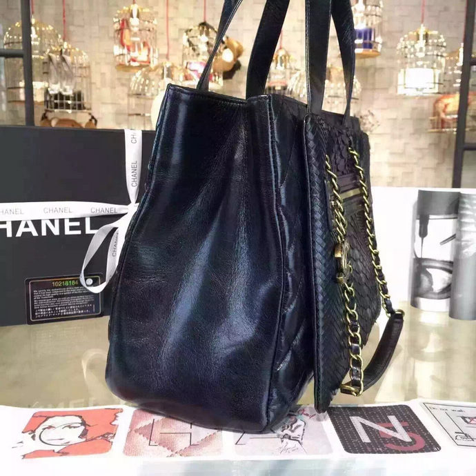 2016 Chanel Two Handle Bag Snake Leather A57399 Black