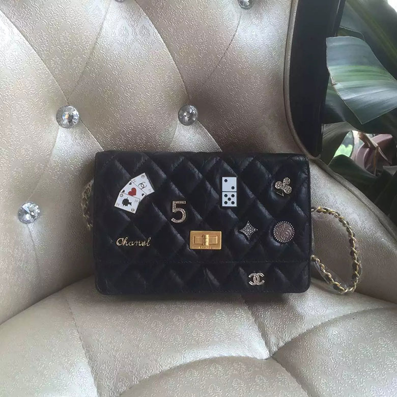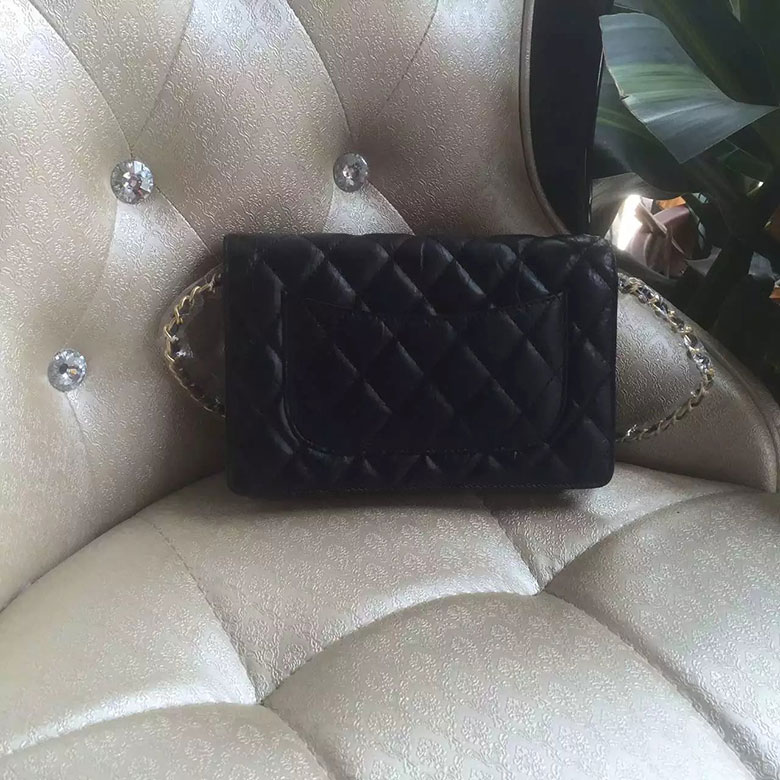 2016 Chanel WOC A33814 Black Original Leather Badge Bag Gold