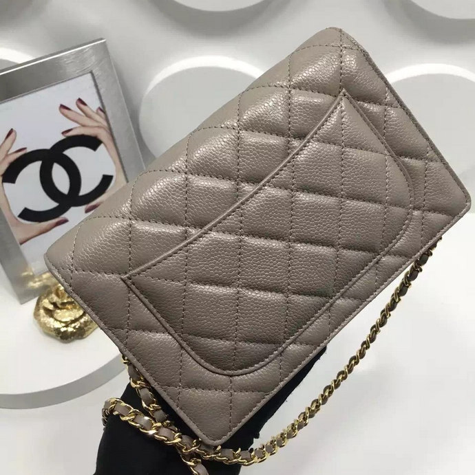 2016 Chanel WOC A33814 Gray Original Caviar Leather Mini Flap Bag Gold