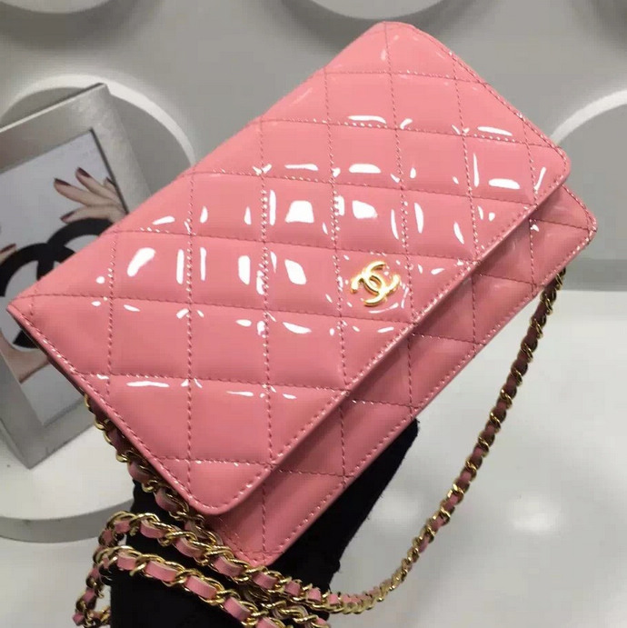 2016 Chanel WOC A33814 Pink Original Patent Leather Mini Flap Bag Gold