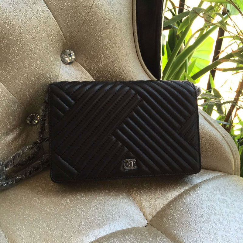 2016 Chanel WOC mini Flap Bag Black Original Caviar leather A82257