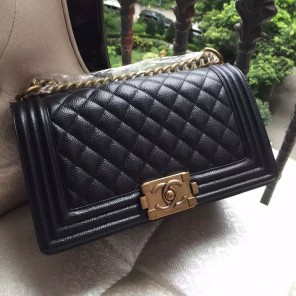 2016 LE Boy Chanel Flap Shoulder Bag Original Caviar Leather A67086 Black