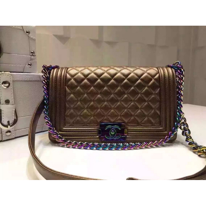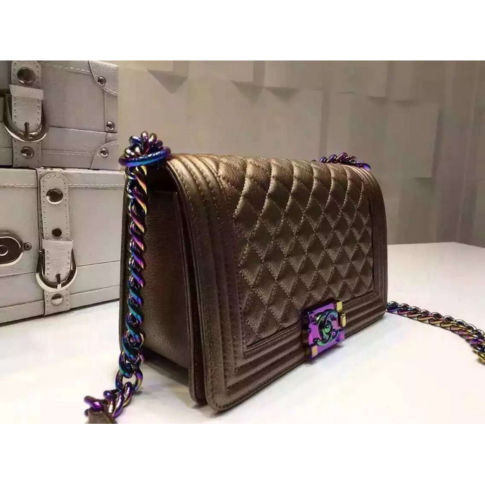 2016 LE Boy Chanel Flap Shoulder Bag Original Deer Leather A67086 Bronze
