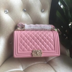 2016 LE Boy Chanel Flap Shoulder Bag Original Sheepskin Leather A67086 Pink