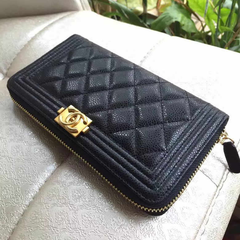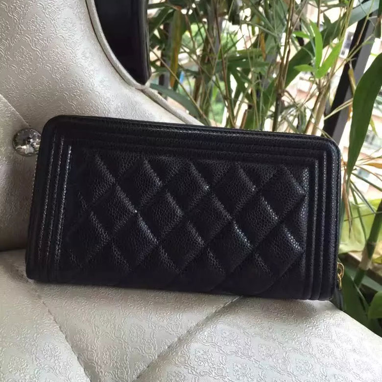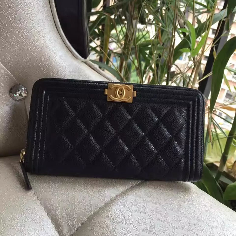 2016 Le Boy Chanel Zippy Wallet Original Caviar Leather A80286 Black Gold